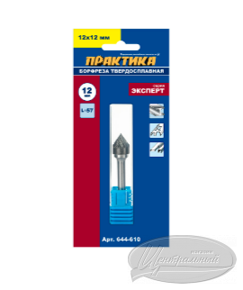 Борфреза по металлу «ПРАКТИКА» зенкер 60град, тип J,12х12мм,хвостовик 6мм 644-610