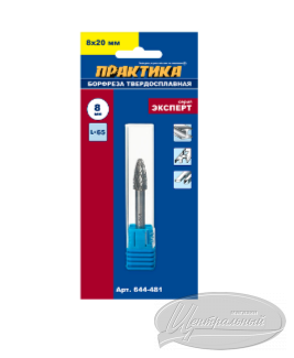 Борфреза по металлу «ПРАКТИКА» параболическая, тип F,8х20мм,хвостовик 6мм 644-481