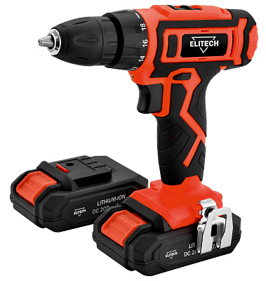 Дрель- шуруповерт ELITECH ДА 202СЛ 20В, 2х1.7Ач,Li-ion, БЗП-10мм