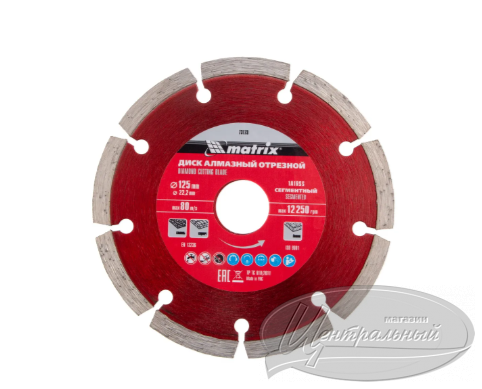 Отрезной алмазный диск Matrix 73173, 125 х 22,2 мм, предназначен для сухой резки натурального и искусственного камня, кирпича, свежего и твердого бетона. Он применяется с углошлифовальными машинами соответствующего типоразмера. Благодаря высокой скорости реза диск позволяет выполнять работы большого объема. Он пригодится на небольших строительных площадках и будет идеальным помощником при решении бытовых задач.
