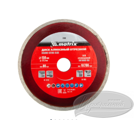 Отрезной алмазный сплошной диск Matrix 73186 диаметром 150 х 22,2 мм предназначен для мокрой резки мрамора, керамической плитки, керамогранита, натурального или искусственного камня. Устанавливается на углошлифовальную машину или плиткорез с посадочным диаметром 22,2 мм. Благодаря использованию водяного охлаждения улучшается качество реза, а также продлевается срок службы диска.