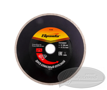 Отрезной алмазный диск Sparta 731495, сплошной, 180 х 25,4 мм — расходный инструмент для болгарок и плиткорезов, используемый для мокрого резания. Он позволяет выполнить аккуратный рез по керамике, керамограниту и мрамору в бытовых условиях. Рекомендуется применять с использованием водяного охлаждения.