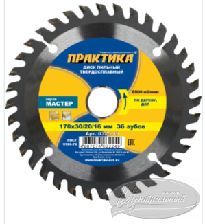 Пильные диски по дереву и ДСП. ГОСТ 9769-79. Серия «Мастер». Высококачественные пильные диски для ручных дисковых пил и станков. Твердость тела HRC 45-46, напаек из карбида вольфрама (сплав ВК8) HRC. 90-93. Угол атаки зуба + 15°.