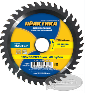 Пильные диски по дереву и ДСП. ГОСТ 9769-79. Серия «Мастер». Высококачественные пильные диски для ручных дисковых пил и станков. Твердость тела HRC 45-46, напаек из карбида вольфрама (сплав ВК8) HRC. 90-93. Угол атаки зуба + 15°.
