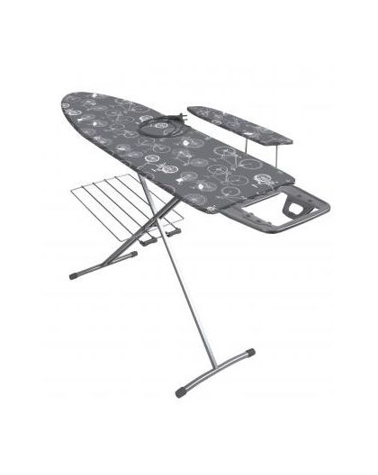 Гладильная поверхность -фанера (1225х380мм) плавно регулируемая высота до 90 см, EUROподставка под утюг с термосиликоном, съемный подрукавник, электросоединитель 1,6м, розетка, полка для белья, материал чехла-хлопок, max нагрузка на глад.поверхность 15кг, вес изделия-7,3кг. Индивидуальная термоупаковка.