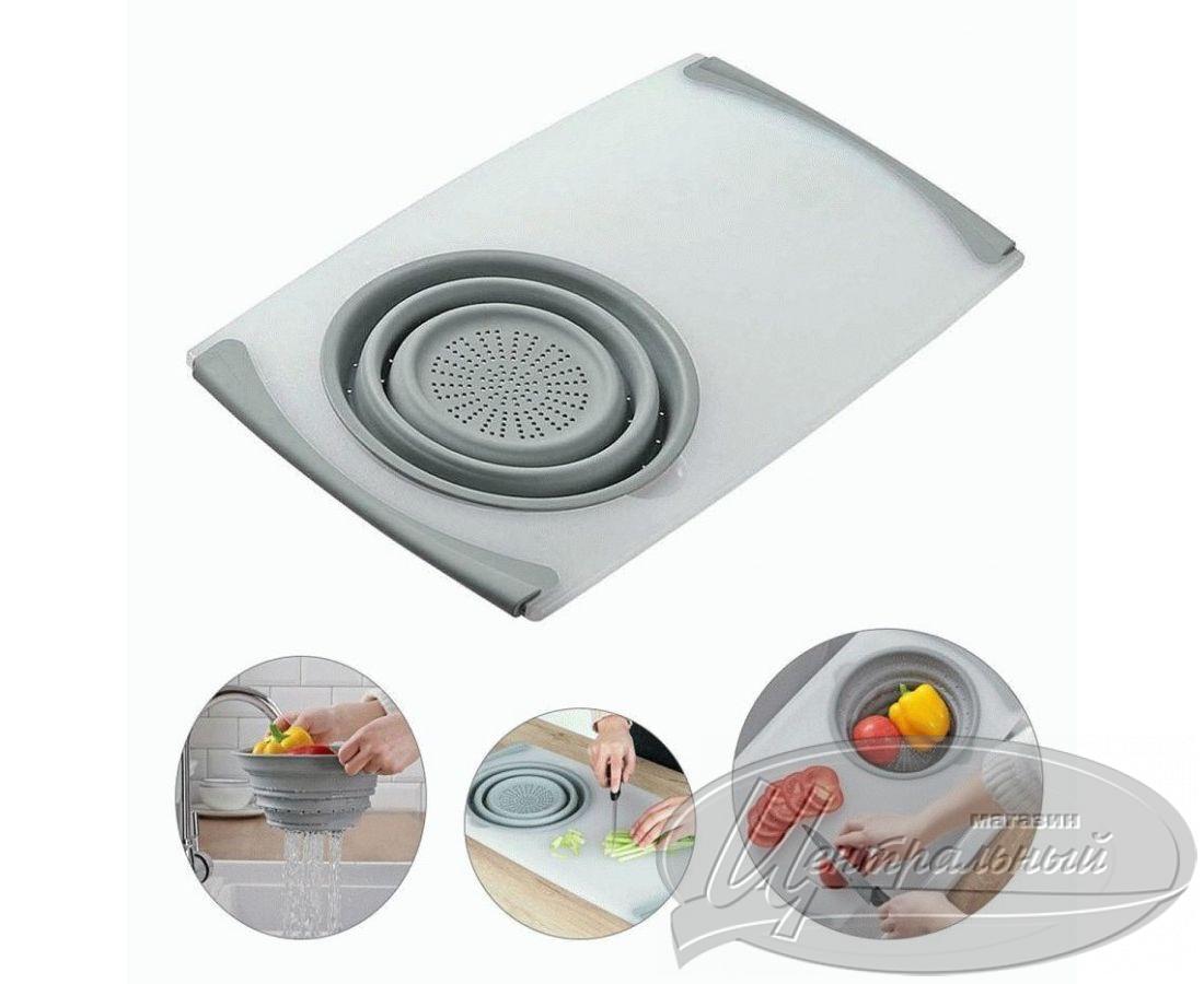 Разделочная доска и дуршлаг складной от CELLTIX — это два нужных предмета на кухни, совмещенных в одном . Дуршлаг встраивается в отверстие в доске, что делает процесс приготовления пищи максимально удобным. Такие разделочные доски для кухни позволяют мыть, сушить и разделывать продукты одновременно. Доска дуршлаг используется для мытья и нарезки овощей и фруктов, для измельчения мяса и рыбы. Доска кухонная при хранении может ставится прямо на раковину, а дуршлаг можно хранить отдельно или оставить в доске в сложенном состоянии. Большая разделочная доска устойчива на любой гладкой поверхности благодаря противоскользящим ножкам . Доска кухонная разделочная легко помещается в посудомоечную машину. Термопластичная резина и пластик, из которых выполнены доска и дуршлаг выдерживают температуру в диапазоне от -20 до +80 градусов Цельсия. Материалы безопасны для здоровья и не имеют посторонних запахов. Размеры разделочной доски 45х28х1 см. Размер дуршлага в разложенном виде 24х20х9,5 см. Размер дуршлага в сложенном виде 24х20х3 см. Диаметра дна дуршлага 10 см. В комплекте разделочная доска 1 шт и дуршлаг 1 шт