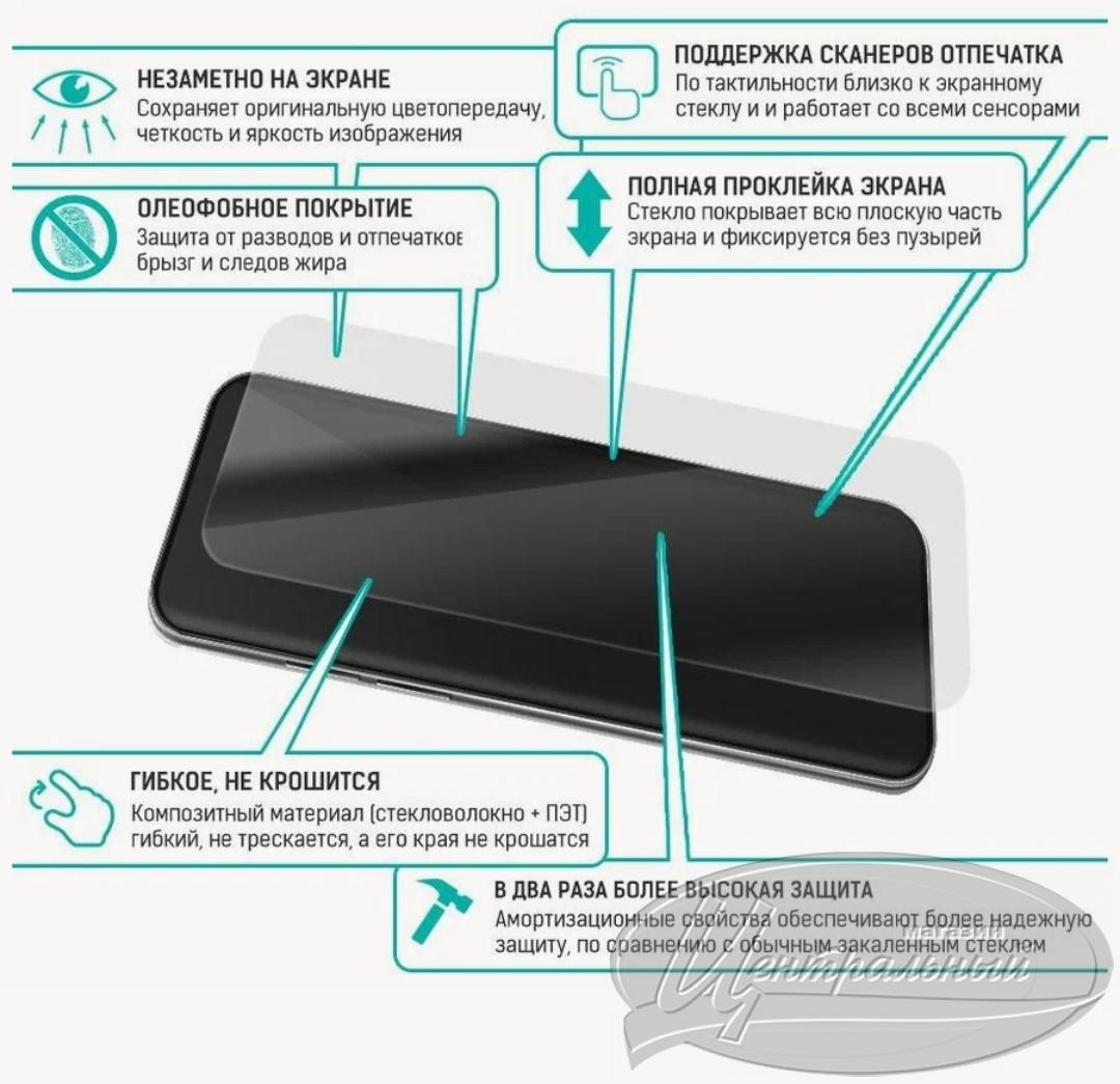Стекло легко устанавливается на экран телефона и идеально подходит по размеру и форме. Благодаря своей гибкости и прочности, оно обеспечивает надёжную защиту дисплея от ударов и падений.