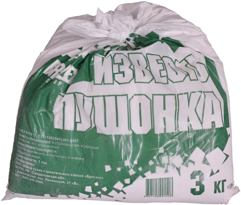 Известь гашеная пушонка представляет собой сухую смесь белого цвета, которая практически не растворима в воде. Данный состав широко используют в строительстве и домашнем хозяйстве для побелки помещений, в качестве удобрения, для получения различных кислот органического происхождения. Известь Brozex реализуется в герметичных пакетах весом 3 кг.