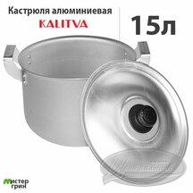 Кастрюля с металлической крышкой и двумя металлическими ручками на 15 литров изготовлена из чистого пищевого алюминия методом штамповки.