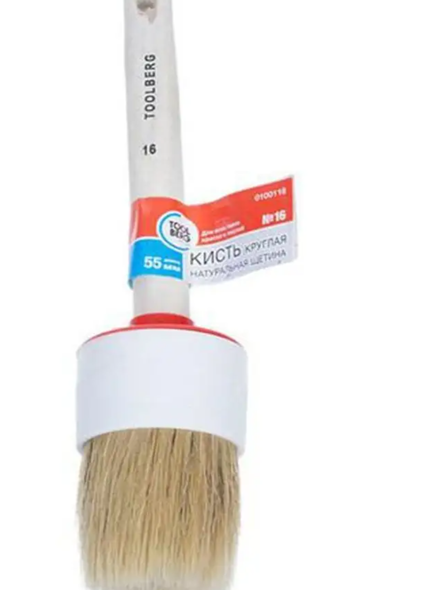 Кисть круглая №16.Малярные кисти применяются в качестве нанесения различных красок на небольшие объекты.А так же, в качестве нанесения масла и цветокоррекции на мебельную продукцию.Кисти можно использовать для нанесения защитных составов на плодовые и садовые растения, клеящегося вещества на стены перед поклейкой обоев.Натуральная щетина.Пластиковый корпус.Деревянная рукоятка.Применяется для нанесения красок, эмалей, лаков и других лакокрасочных материалов на различные поверхности.Натуральная щетина обеспечивает отличные краскообменные свойства кисти.Деревянная рукоятка оснащена отверстием для подвески.