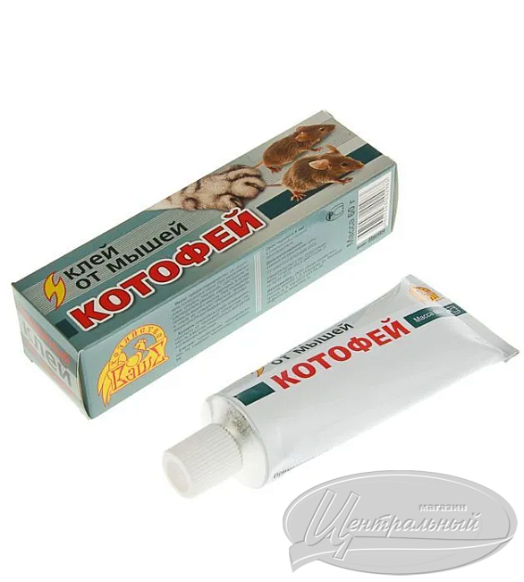 Клей «Котофей» предназначен для отлова мышей и мелких крыс, обладает замечательными клеящими свойствами, надежно фиксирует «влипших» грызунов. Не содержит токсичных веществ, не пахнет, не отпугивает грызунов запахом. Легко наносится на подложки, имеет оптимальную консистенцию, не растекается. В «намазанном» виде очень, очень долгое время не высыхает, не покрывается коркой и не теряет своих свойств. Прекрасно ловит мышей как в сухих, так и во влажных помещениях, а также вне помещений. (Клеящие свойства немного снижаются лишь на морозе).