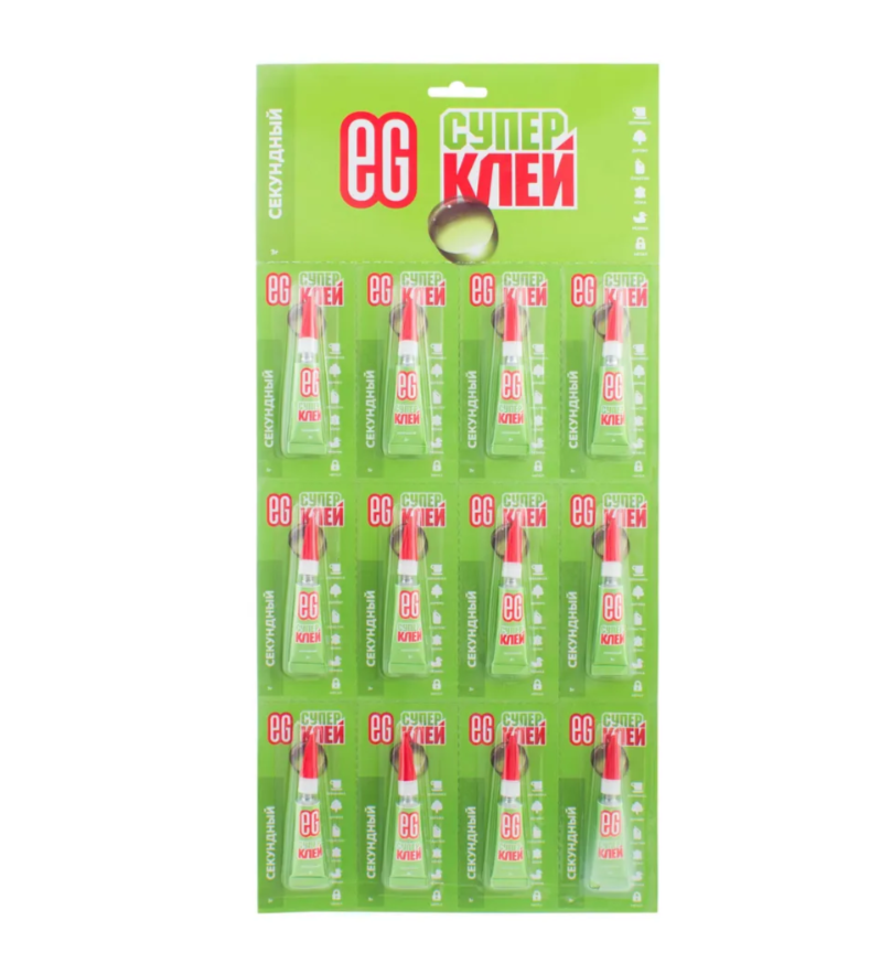 Универсальный супер клей Еврогарант обеспечивает моментальное склеивание изделий из разных видов материалов (резины, дерева, пластмассы, керамики, металла, фарфора, картона и проч.) Наносить тонким слоем на одну из поверхностей. Склеивает в течение 5-60 сек. Для увеличения эффекта рекомендуется предварительно обезжирить склеиваемую поверхность. Колпачок PIN — CAP позволяет неоднократно открывать и закрывать тюбик без склеивания Состав: этилцианакрилат Описание: Прозрачный со специфическим запахом Хранение: при температуре от -20°С до +35°С Не подлежит обязательной сертификации Колпачок PIN — CAP позволяет неоднократно открывать и закрывать тюбик без склеивания время схватывания, 1 мин время полного высыхания, 12ч кол-во компонентов 1 основа состава Этилцианакрилат особенности покрытия(быстрое засыхание) секундный (да/нет) да склеиваемые материалы резина, дерево, пластмасса, керамика, металл, фарфор, картон и проч.