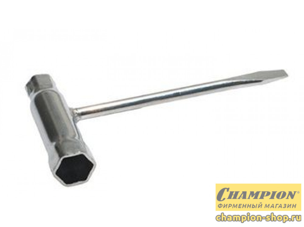 Ключ комбинированный Champion C1201 к бензопилам моделей 138, 242, 335, 341, 345, 255. Монтирует свечи и шины, нижней частью затягивают цепи. Размеры: одна сторона – 11мм, другая – 16мм. Габариты изделия – 145х50х23мм.
