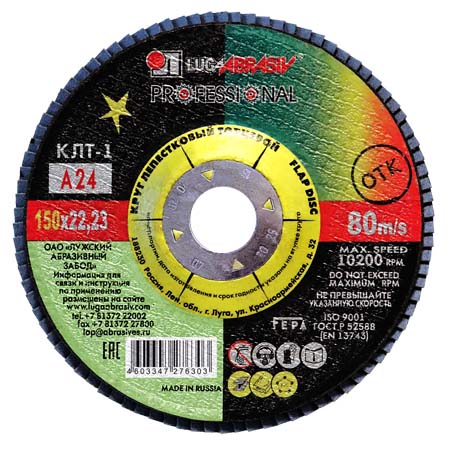 Круг лепестковый торцевой КЛТ1 мм 150х22 мм А 24 Луга-Абразив серии Professional