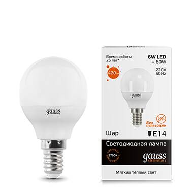 Лампа Gauss Elementary Шар 6W E14 2700K 89/45