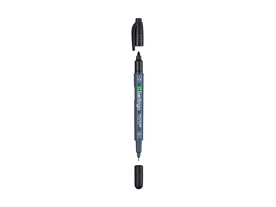 Маркер перм. 2-х сторон. 0,5/1мм ЧЕРНЫЙ (Berlingo)