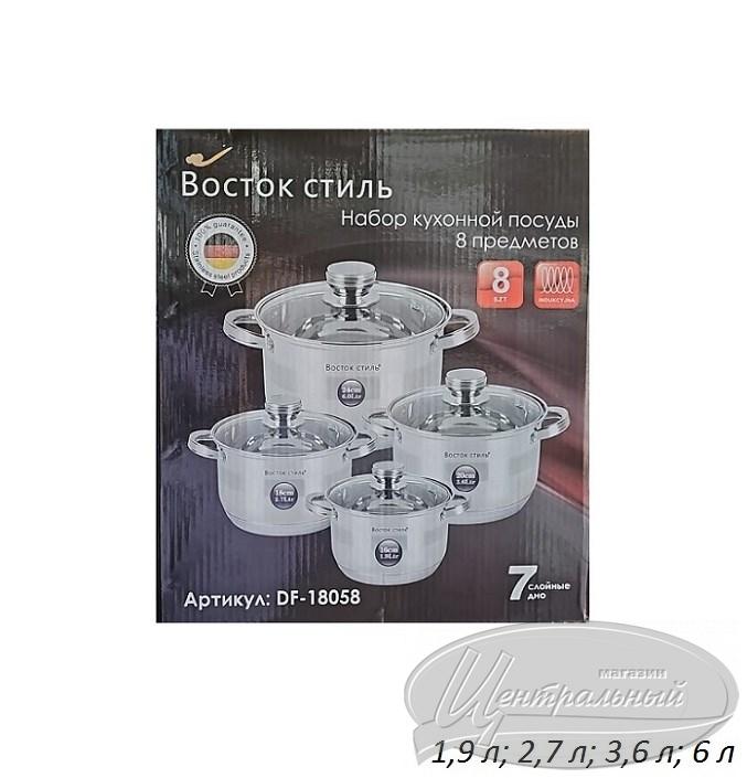 Особенности посуды: Многослойное теплоаккумулирующее дно, крышки с паровыпуском, мерная шкала, ручки кастрюли закреплены клепками
