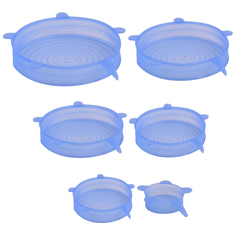 Набор силиконовых крышек предназначен для закрывания различных емкостей: банок, контейнеров, мисок, пиал. Крышки помогут организовать пространство на кухне и в холодильнике. Приспособления эластичные, подойдут для квадратной и овальной посуды. Ваша пища дольше сохранит свежесть, не заветрится, не впитает посторонние запахи. В сезон фруктов и овощей силиконовые крышки помогут продлить срок хранения разрезанного арбуза, дыни, лимона и т. п. Набор прост в использовании — подберите необходимый размер, взяв обеими руками крышку, растяните ее изнутри и наденьте на емкость. С помощью специального язычка, изделие легко снимается с любой емкости, достаточно потянуть за него вверх. Набор предназначен для многоразового использования, рассчитан на температуры от -40 до +220 °С. После использования промойте крышки под проточной водой с жидкими моющими средствами. Допускается мытье в посудомоечной машине. Не используйте абразивные материалы и жесткие щетки. Со временем может исчезнуть яркость цвета, но это не влияет на качество изделия. Изготовлено из силикона. Диаметры: 6,5 см; 9 см; 11 см; 14 см; 16 см; 19,5 см, высота от 2,5 до 3,2 см.