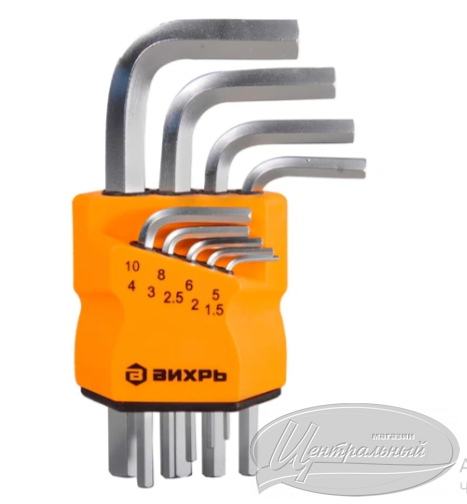 Набор имбусовых ключей Вихрь HEX 1.5-10 мм, 9 шт. 73/6/5/11 используется для закручивания и выкручивания резьбовых соединений. Г-образная форма инструмента позволяет работать с большим крутящим моментом.