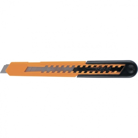 Нож Sparta 78906 длиной 130 мм, в пластиковом усиленном корпусе и с выдвижным лезвием шириной 9 мм, используется для разрезания мягких материалов: бумаги, картона, обоев, кожи. Выдвижной механизм позволяет регулировать рабочую длину лезвия. Нож будет полезен при проведении ремонтных и отделочных работ, а также пригодится на складе, дома или на даче.ПреимуществаЛезвие толщиной 0,4 мм изготовлено из высокоуглеродистой стали 60, характеризуется прочностью и износостойкостью.Усиленный пластиковый корпус повышает устойчивость инструмента к механическим нагрузкам.Для восстановления режущей способности лезвия достаточно отломить затупившийся сегмент.