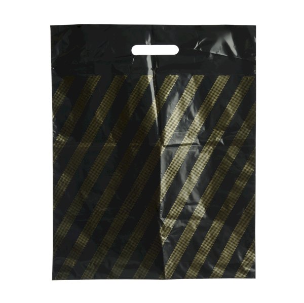 Пакет с вырубной ручкой, рисунок «золотая полоса», изготовлен из полиэтилена высокого давления. Пакет с четким, красочным и ярким рисунком. Ламинированный пакет имеет презентабельный внешний вид, прекрасно сохраняет форму. Обладает высокой прочностью к проколу и разрыву, стойкость к растрескиванию, обладает большей устойчивостью к влаге и другим внешним факторам. Поверхность пакета ровная и гладкая. Размер 40х50 см. Плотность 50 мкм. В упаковке 100 штук.