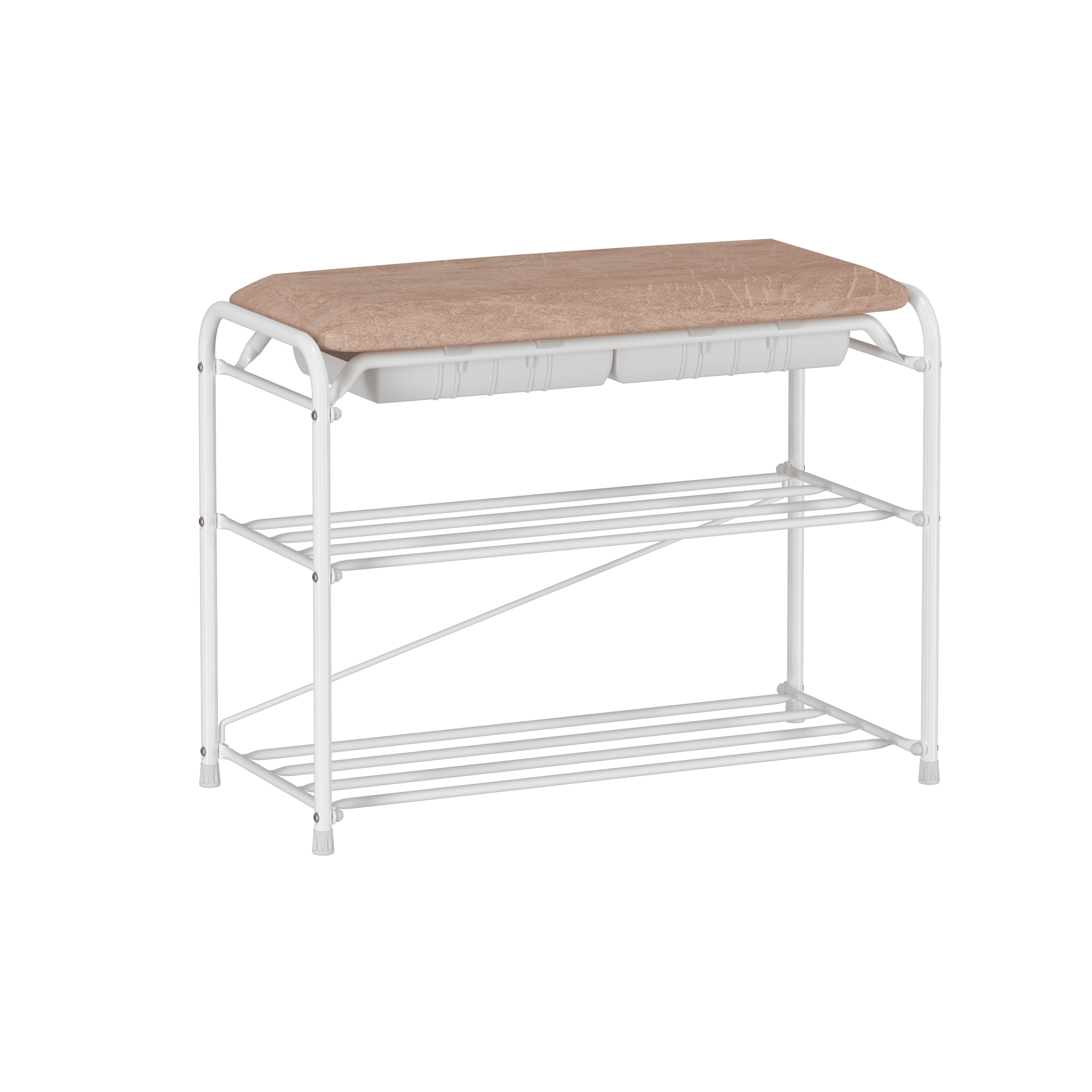 Обувница с мягким сиденьем и ящиком от российского производителя «ЗМИ» создана для компактного хранения обуви в доме или офисе.Обувница содержит 2 яруса, на которых с лёгкостью помещается до 6 пар обуви. Сиденье из прочной винилискожи, обладает повышенной износоустойчивостью. Под сиденьем расположен ящик для мелочей. Долговечная, благодаря каркасу и полкам из стали с полимерно-порошковым покрытием. Пластиковые заглушки на ножках защитят пол от царапин. Допустимая нагрузка на полку до 8 кг, на сиденье до 120 кг. Собирается легко, благодаря пошаговой инструкции.