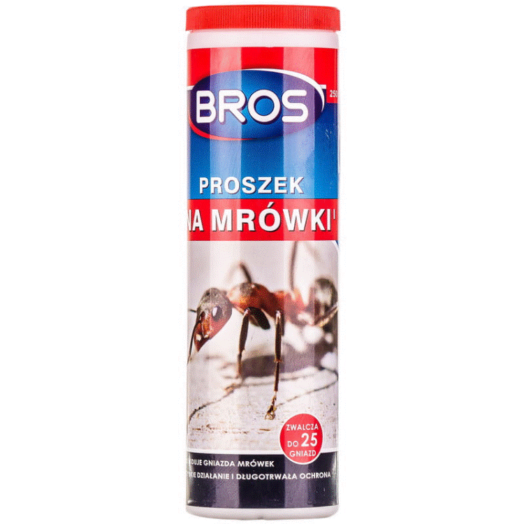 BROS- гранулированный порошок белого цвета. Предназначается для избавления от муравьев в жилых помещениях, в беседках, на террасах, а также поблизости от места обитания людей.