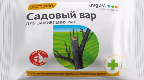 Вар садовый Avgust — средство для заживления ран декоративных и плодовых деревьев, полученных ими вследствие механических повреждений, неблагоприятных погодных условий, обрезки. Препарат помогает устранить последствия солнечных ожогов, повреждений грызунами и т.п. Применяется при проведении прививок на деревьях, способствует лучшей приживаемости подвоя, глазка. Предотвращает попадание на поврежденные участки коры воды, а также заражение грибковыми заболеваниями. Вар садовый легко и ровно укладывается на свежую рану даже при нулевой температуре; хорошо прилипает; не зависит от температуры, в жару не растекается; не наносит вред самой древесине (камбию) – не обжигает ее. Способ применения: очистить от старой и отмершей коры; обязательно продезинфицировать оголенную часть дерева раствором медного купороса; нанести садовый вар на сухую поверхность пластиковой или деревянной лопаточкой. При заделке глубоких ран разрешается добавлять в размягченный вар наполнитель (мел или доломит в соотношении 1:1). Внимание: средство горючее.
