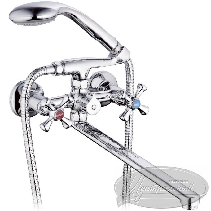 В комплекте поставки: смеситель для ванны, эксцентрики с отражателями, лейка, шланг, держатель.