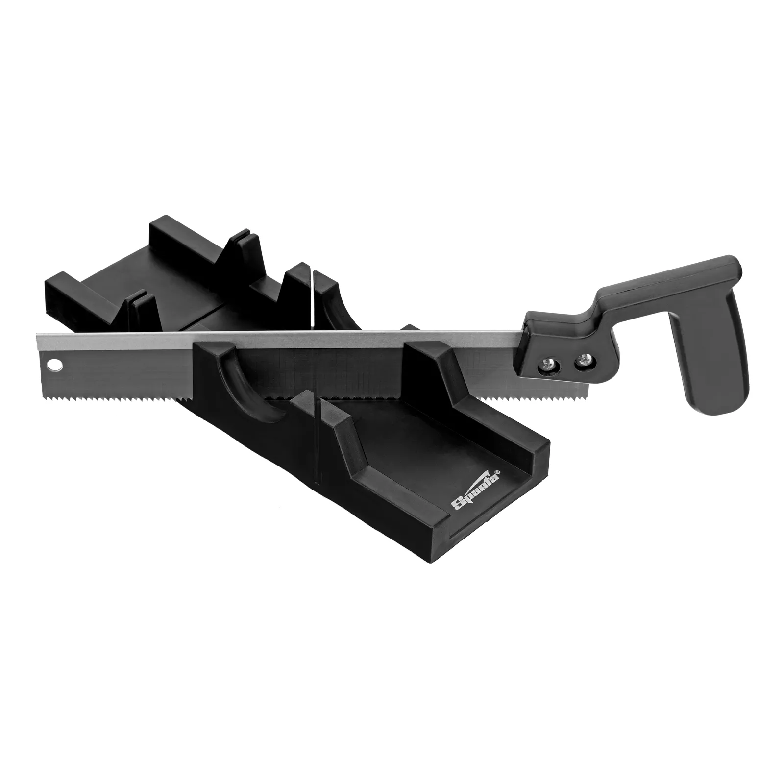 Пластиковое стусло Sparta 225307, 300 х 65 мм, в комплекте с пилой 300 мм, пригодится для резки плинтусов, вагонки, ламината и других материалов шириной до 65 мм и толщиной до 40 мм. Оно позволяет установить детали для их последующего распила под углом 45 и 90 градусов.