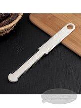 Сырорезка «Энтен» — это удобный инструмент для нарезки сыра тонкими ломтиками. Она оснащена двумя струнами, которые позволяют регулировать толщину нарезки. Корпус сырорезки выполнен из пластика, а струны — из нержавеющей стали. Благодаря своей конструкции и материалам, сырорезка обеспечивает лёгкое и быстрое нарезание сыра без повреждения его структуры.