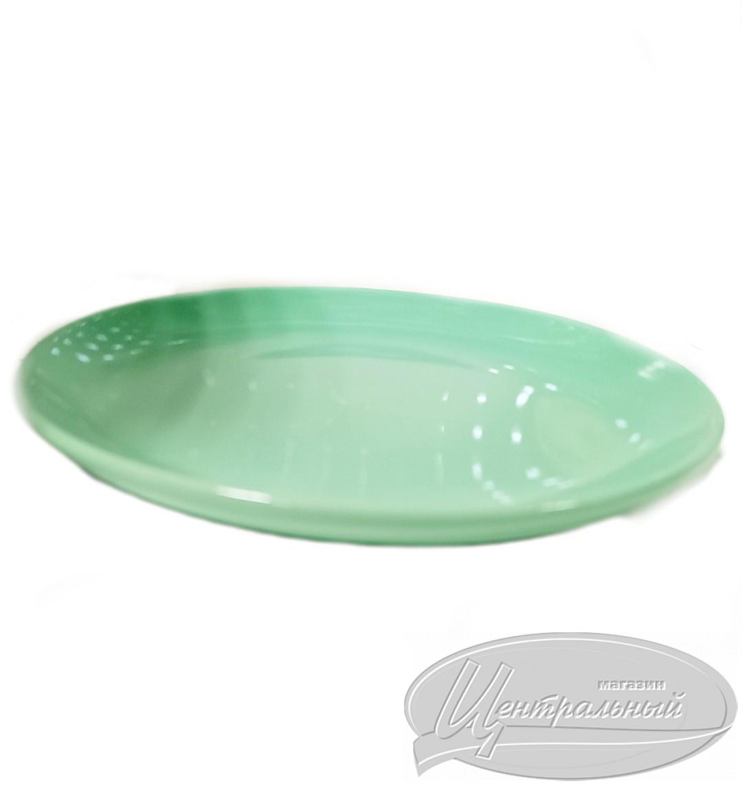 Тарелка керамическая диаметром 18 см и высотой 2 см. Цвет светло-зелёный. Материал — керамика. Можно мыть в посудомоечной машине и использовать в микроволновой печи.
