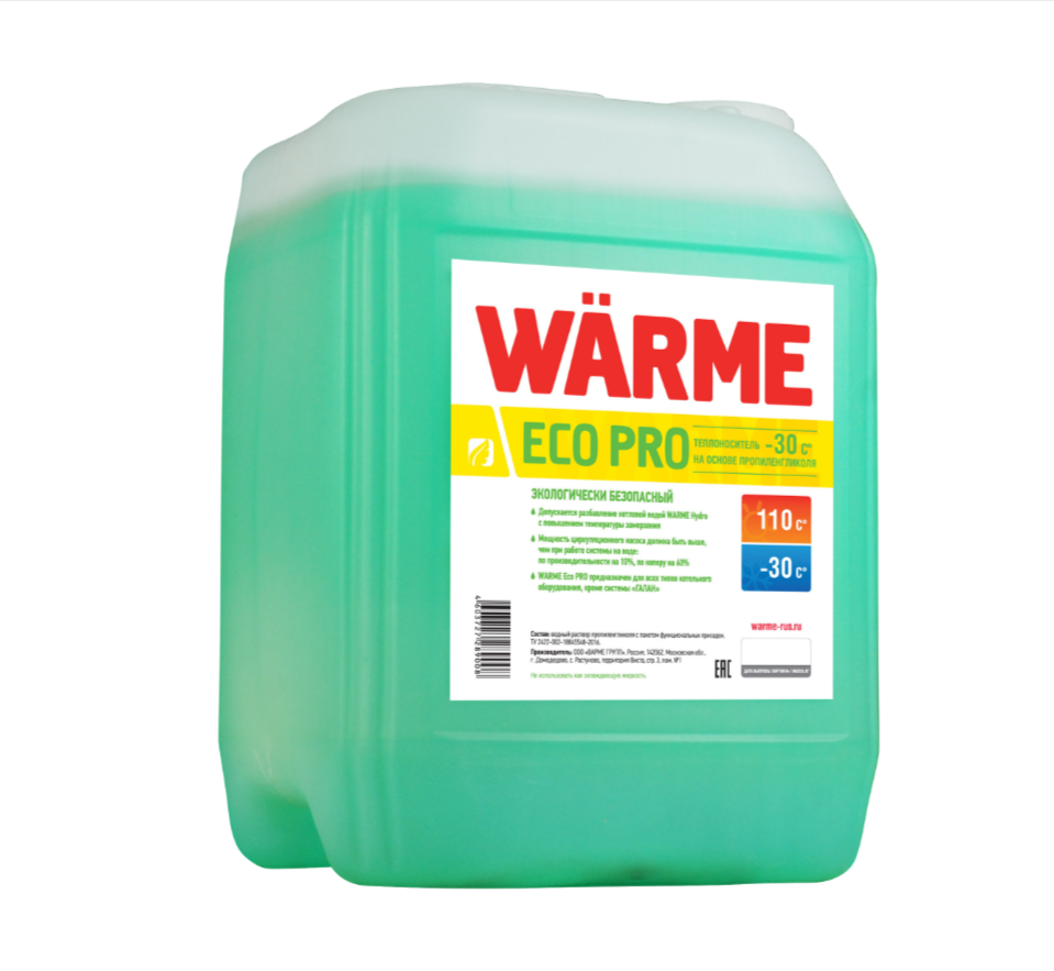 - Не использовать теплоноситель Warme Eco Pro 30 в системах отопления с электролизными котлами типа Галан.