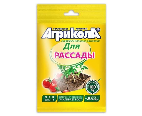 Универсальное удобрение для подкормки рассады всех овощных культур. Удобрения включают полный сбалансированный набор макро- и микроэлементов, не содержат хлора и тяжелых металлов. Правильный состав, учитывающий потребности растения в тот или иной период роста, своевременные подкормки удобрениями Агрикола препятствуют образованию нитратов в растениях.