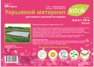 Многофункциональный укрывной материал ТМ LISTOK обеспечивает защиту растений с момента посадки и до наступления первых холодов от заморозков до -6 градусов, от ливневых дождей, холодной росы, града, солнечных ожогов и вредителей.