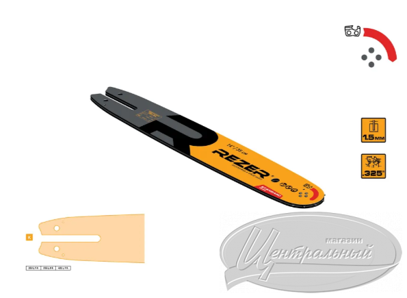Шина для бензопилы REZER STANDARD 355 L8K (14″-1,5-0,325″-56 звеньев) Сварная многослойная направляющая шина для цепных пил специализированной серии STANDARD, предназначена для частого (систематического) использования в целях, не связанных с профессиональной деятельностью. Шина для бензопилы REZER STANDARD 355 L8K (14″-1,5-0,325″) подходит для бензопил или электропил с длиной шины 14 дюймов (350мм) следующих производителей: (Stihl-230,241,250; 0.325″-1,5-14″-56 звеньев; OR-148SLBA074 и других).