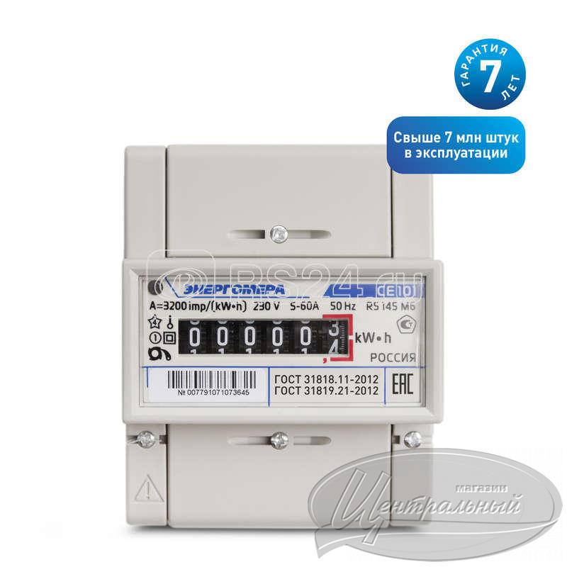 Однофазный однотарифный электронный счётчик электроэнергии Энергомера СЕ101 5–60А предназначен для учёта активной энергии в сетях переменного тока частотой 50 Гц. Он устанавливается на DIN-рейку и имеет диапазон рабочих температур от −40 °C до +60 °C.
