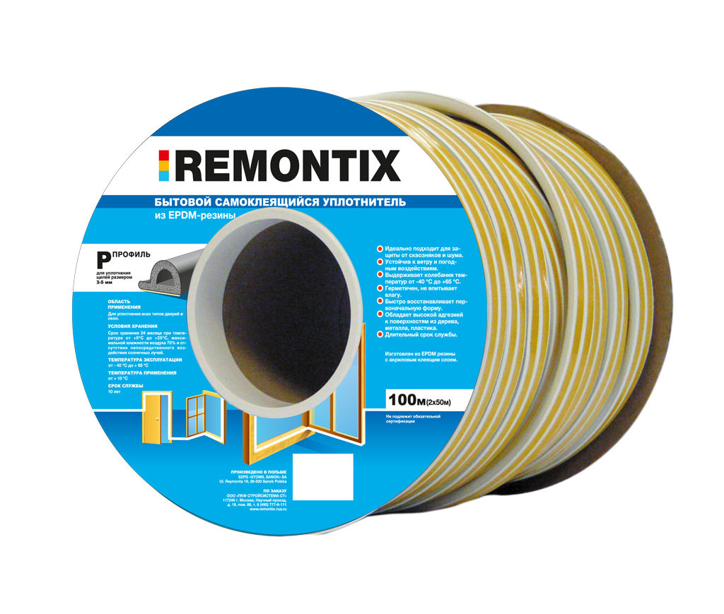 28545 Уплотнитель д/окон и дверей «Remontix» проф.Р
