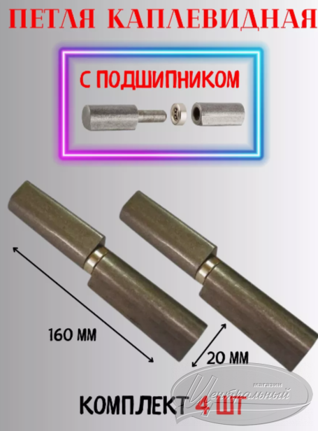 Петля каплевидная с подшипником гаражная. Петли для металлических решеток, каплевидные с подшипником. Металлические петли удобны для установки на решетки окон. Выполнены из прочного металла с применением высоких литейных технологий, обеспечивают легкую и долговечную эксплуатацию металлических дверей и решеток. Придают изделию законченный вид не только эстетически, но и эксплуатационно — ведь служат они очень долго. В комплекте: 4 петли.