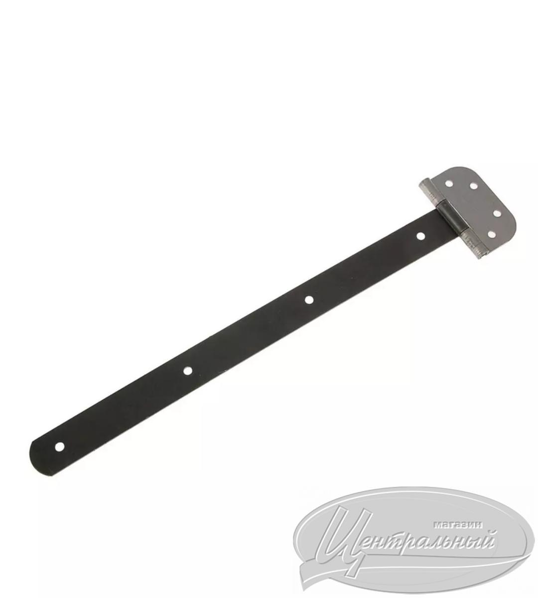 Петля-стрела для навесных ворот, дверей. Материал — сталь. Габариты крепежной части — 130х80х5 мм, длина «стрелы» — 420 мм.