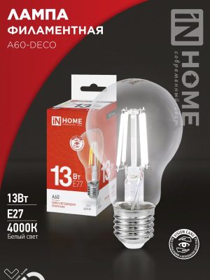 Лампа св/д IN HOME А60-deco 13Вт Е27 4000К